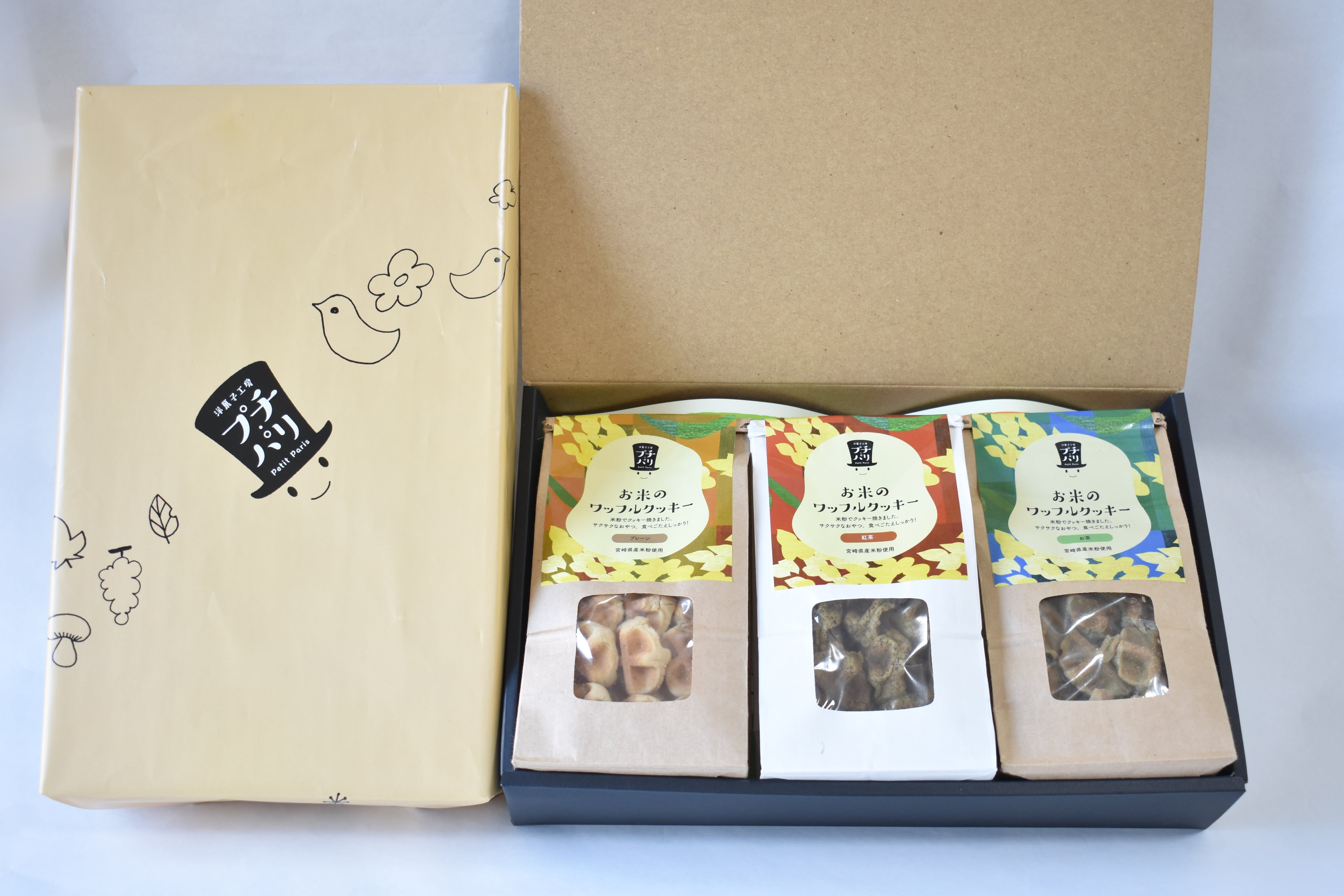 宮崎県産米粉の一口サイズのお米のワッフルクッキーのセットです。